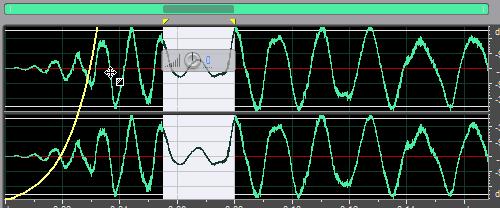 Для того чтобы изменить размер сэмпла, подведите курсор к краю сэмпла, нажмите и ведите в сторону: