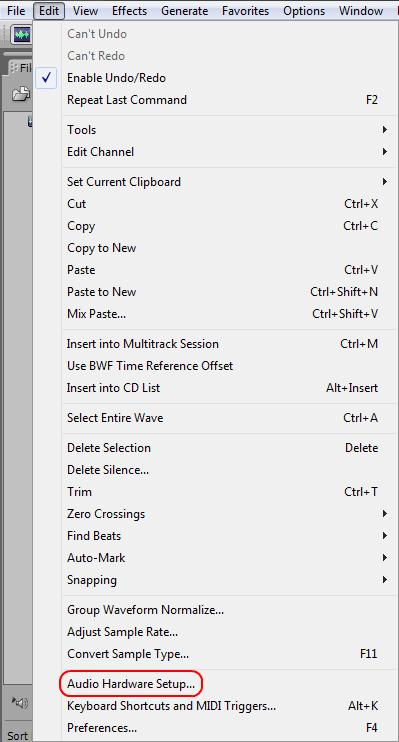 Запустите программу и во вкладке Edit выберите Audio Hardware Setup: