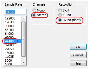 Для выбора файла в хорошем качестве выберите установки как на рисунке ниже (значения Sample Rate = 44100 вполне достаточно):