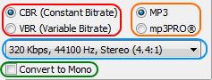 Выбор Stereo, дает возможность управления каналами (2 канала (правая, левая колонки)), возможность сделать звук разным в правом и левом каналах. Mono создает аудио файл без возможности работы с каждым каналом отдельно. Но стоит заметить, что файлы с одинаковым качеством и содержанием в Mono и Stereo будут отличатся в размерах при сохранении, ровно в 2 раза. То есть если вы сохраните стерео файл и он будет размером 2мб, то моно файл с точно таким же качеством будет размером 1мб. Это происходит потому, что при сохранении стерео файла сохраняется 2 канала отдельно, при моно сохранятся оба канала вместе, т. к. в них нет отличия. Также если вы попытаетесь сохранить моно и стерео файлы в одинаковом качестве к примеру в формат mp3, то если вы сохраните стерео файл с качеством 256kbps, то для того чтобы сохранить моно файл точно с таким же качеством вам будет необходимо выбрать 128kbps. Это связано с тем что стерео каналы суммируются, а моно 1.
