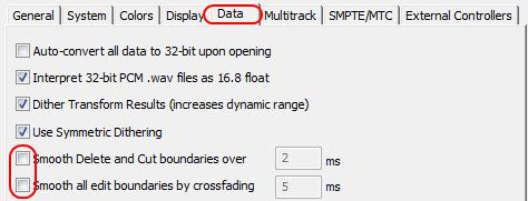 В программе Adobe Audition по умолчанию стоят настройки для менее заметного удаления или применения эффектов, если вы произведете неправильное удаление, то щелчки сгладятся или если примените какой либо эффект, то не будет резких скачков звука в месте его начала. Но это не всегда удобно, к примеру если нужно создать волну для синтезатора или точно подредактировать сэмпл, эти настройки могут мешать.