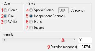 9. Duration (продолжительность) – определяет количество секунд генерируемого шума.