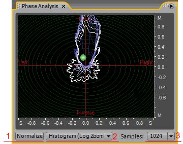 Вы можете использовать Phase Analysis (анализатор фазы) чтобы выявить противофазы каналов в стерео сигналах, которые можно исправить с помощью команды Invert. Фазовый анализатор также показывает, стерео разделение правого и левого каналов.