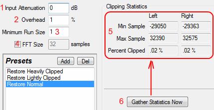 3. Minimum Run Size (минимальный размер) – указывает кратчайшую длину клиппированных сэмплов к которым будет применена реставрация. Значение 1 реставрирует все сэмплы, которые кажутся клиппированными, в то время как значение 2 реставрирует клиппированные сэмплы только тогда, когда за ним следовал еще 1 клиппированный сэмпл (то есть реставрируются только клиппированные участки длиной не менее 2 сэмплов).