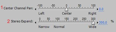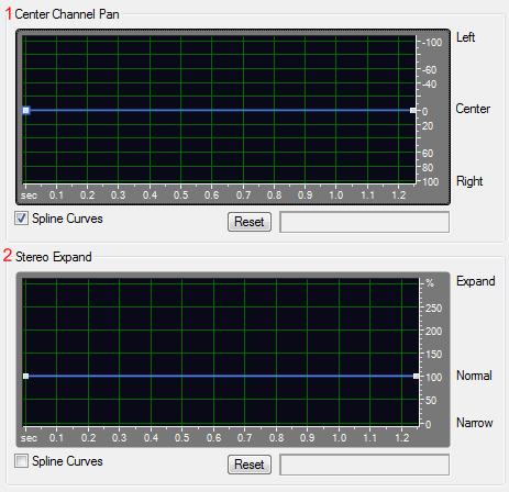 Расширение работ путем вычитания или добавления различного количества сигналов правого и левого каналов так, что звук находится справа или слева. Вы можете изменять оба этих параметра динамично, во время проигрывания с помощью соответствующего графика.