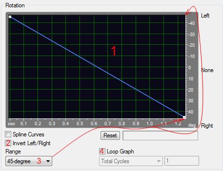 3. Range menu (меню диапазонов) – устанавливает диапазон вращения от 45° до 360°. При настройке Rotation и Range, имейте в виду следующее: