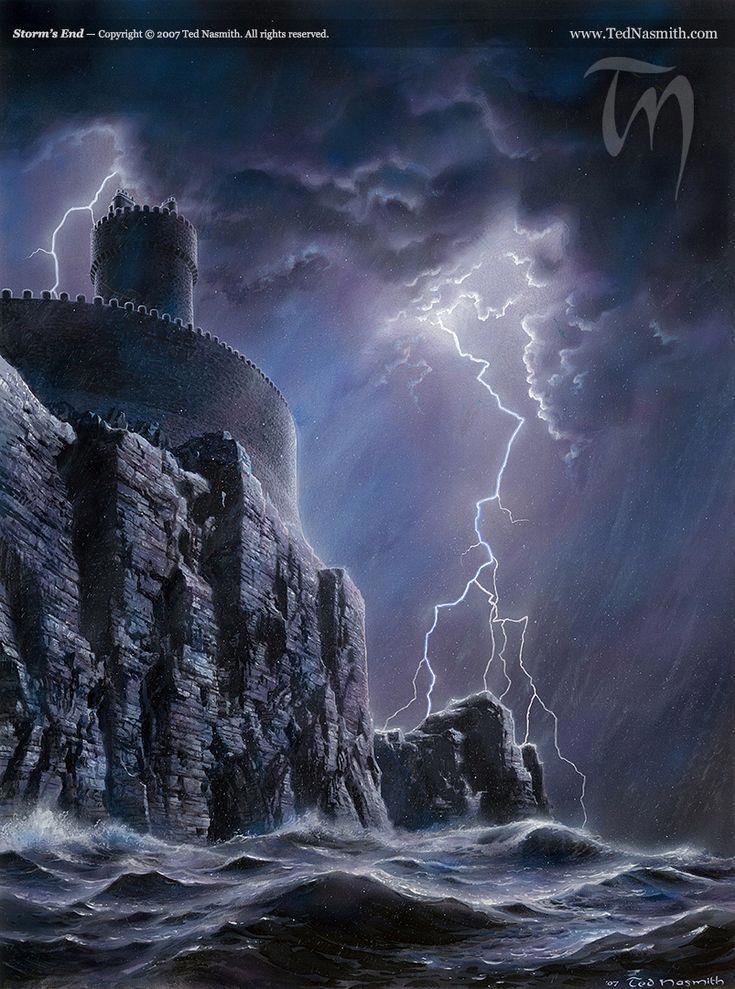Приблизившись к холмистой гряде, с которой открывается прекрасный вид на мой грозный замок, Марик развернул штандарт Баратеонов, привязав руку к древку и вставив его в специальный паз на седле, дабы ветер его не вырвал, а рядом, по бокам, «на подстраховке» расположились сиры Бенедикт и Бейлон. Мы поднялись на холм и… всё-таки вблизи впечатление от Штормового Предела, который до этого только дразнил взоры издали, было куда более сильным. Бастион высился над округой, окружённый грозовым небом, подобно цитадели тёмного властелина. И над этим великолепием гордо реял родовой штандарт Баратеонов. От мощного порыва ветра знамя в руках Марика радостно ожило, приветствуя своего старшего собрата.