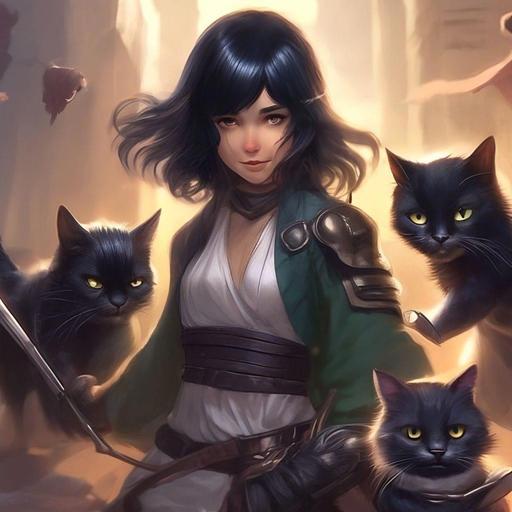 – Малышка, хватит махать своей зубочисткой. Лучше отдайся по-хорошему, а то дяди накажут проказницу. – сказал один из троицы, окружившие черноволосую девушку, прикрывающую своим телом трёх чёрных котов.