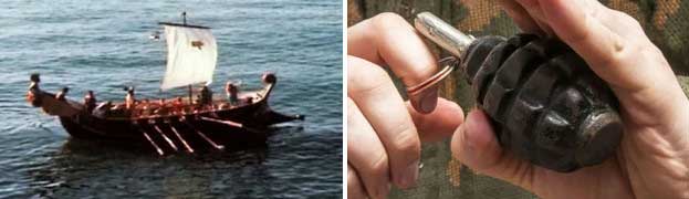 А потом, когда критяне собрали весь улов, мы предложили фаласарнцу вывести в море на буксире старую гемиолию или миопарон, нагрузив посудину старыми амфорами или горшками, какие ему не жаль побить ради натурного эксперимента. Покуда его люди искали всё необходимое, мы подобрали на берегу несколько камней, соответствующих по весу лимонке, который проверили ручным пружинным динамометром. Эолай пожлобился рисковать настоящей пиратской гемиолией, выбрав вместо неё старую рыбацкую шаланду схожих размеров, но буксировали её на его личной гемиолии, на носу которой у него была и малая баллиста. Пристрелявшись из неё выбранными камнями, мы зашвырнули затем на судёнышко-мишень и лимонку, и побитые её осколками горшки весьма наглядно показали критянам, что могло бы стать с самым лихим и отчаянным экипажем пиратской посудины их самого массового типоразмера. Такого намёка не понять критяне тем более не могли.