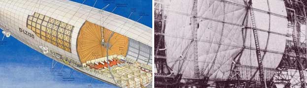 Я ведь упоминал уже в своё время, что мы нацелились сразу на дирижпомпель жёсткого типа, называемого ещё цеппелином в честь однофамильного усатого графа? А в нём несущий лёгкий газ в отдельных мешках-баллонетах содержится, которые поэтому и делаются в форме плоских сегментов, собранных в эдакую колбасу внутри каркаса, а уже на него натянута внешняя оболочка, обеспечивающая аэродинамику. Жёсткая схема плоха в малом типоразмере, с которого мы начинаем, потому как каркас имеет свой вес, который уменьшает полезную нагрузку, и мягкий пузырь при тех же размерах перевозил бы грузов намного больше, но для нас сейчас важнее технологические заделы на будущий крупный типоразмер, в котором жёсткий цеппелин вне конкуренции.