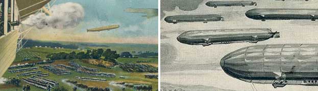 – Да, в воздухе – только они. Но до появления зажигательных пуль их пулемёты были малоэффективны. Жёсткий цеппелин за счёт размещения его несущего газа в многих отдельных баллонетах не так-то легко завалить, а не худших пулемётов и стрелков из них на нём больше, так что обычно с него успевали сбить тот самолёт раньше, чем он наделает в дирижабле слишком много дырок. Надёжно было только залететь сверху и сбросить на него малые бомбы, но это редко кому удавалось. Скорость-то набора высоты у тогдашних самолётов была небольшой, а у дирижабля и потолок выше. А с земли по ним стреляли из обычных полевых пушек, поставленных на зенитные приспособления. Били шрапнелью, и случаи сбития дирижаблей в принципе были, но чаще эта шрапнель при падении обратно поражала своих. Так что на начальном этапе войны цеппелины были малоуязвимы.