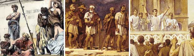 Но то дела собачьи, хотя и их тоже есть смысл на заметку взять, а прежде всего нас люди интересуют. Опять же, если цифирям верить, то пятьдесят тысяч карфагенян в рабство попадёт после Третьей Пунической и столько же коринфян после Ахейской, всего сто тысяч получается. Этого хватит, чтобы римские латифундисты начали сгон со своих земель крестьян-арендаторов и замену их сведущими в продвинутом античном сельском хозяйстве рабами из Карфагена и Коринфа. Вот тогда-то и схватится за башку ошалевший от такой картины маслом будущий демагог Тиберий Гракх Тот Самый, старший сын того Тиберия Гракха, нынешнего сенатора и цензора, которого Гракхов мир. Разорение же этих римских крестьян со Второй Пунической в массовом порядке идёт, а многолетняя служба без смены в заморских провинциях это явление затягивает и усугубляет, но пока нет ещё этих рабов из Карфагена и Коринфа, прикупившему надел разорившегося соседа богатею нет смысла сгонять с земли её бывшего владельца. Сард – он хоть и дёшев, как сард, но и к побегу склонен, и косорук, и уж точно не его руками передовое античное хозяйство на вилле налаживать и развивать. Пусть уж лучше бывший владелец на правах арендатора живёт и хозяйствует, внося арендную плату. Как неимущий, он теперь даже не подлежит призыву на военную службу, но и не бомжует, на дорогах не толпится, в город люмпеном не подаётся и Тиберию Гракху глаза не мозолит.
