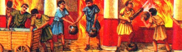 Мы с патроном как раз заканчивали завтракать, а точнее, полдничать, когда раб, посланный им на Форум, принёс новость, что загорелся домус Марка Матиена – ага, того самого изгнанника. Среди бела дня, как и давеча у Титиния. Гром там то ли был, то ли не было, но про гнев богов гегемоны судачат, а кое-кто и к месту событий ломанулся – типа, помогать тушить пожар. Если богатый домус горит, то таких добровольных помощников до хренища сбегается – вся окрестная шелупонь, потому как поди потом разберись, что в натуре сгорело с концами, а что пожаротушители добровольные по люмпенской привычке под шумок скоммуниздили. В данном случае хрен знает, участвуют ли в этом деле люди Лысого Марка или это стихийная инициатива бездельных пролетарских масс, но наши тут точно ни при чём. Да оно ведь по делу и не нужно. Гегемоны и по прежним случаям намёк поняли, на кого боги гневаются, а поучаствовать в каре святотатцев разве не святое дело? Особенно, если ещё и к рукам при этом что-нибудь ценное прилипнет – ага, самый верный признак правильно понятой воли бессмертных небожителей.