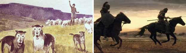 Тем более, что для этого от пастухов ещё и смыться надо суметь – ага, пешему и не знающему местности от конных, прекрасно её знающих и располагающих хорошими пастушескими собаками. Не ищейка, не гончая, не мастино неаполитано, но вполне себе аналог современной овчарки, потому как используется по её основной специальности. Ну и каковы шансы? На кого ставить будем? Это только на пасторальных картинках мирный пастушок играет на свирели или ухлёстывает за пастушкой, пока овцы пасутся, но реально рекомендую Варрона. Во-первых, оптимизация штатного расписания не в нашем двадцать первом веке придумана, а прекрасно известна была и в Античности. Для земледелия уже и Катон нормативы рабского персонала проработал, последующими римскими агрономами не оспариваемые, а для отгонного пастушеского скотоводства у Варрона приведены, того самого, у которого и про говорящие орудия сказано. И при перегоне стад там не очень-то на свирели поиграешь и за пастушкой ухлестнёшь, потому как бдеть надо и бздеть из-за "во-вторых". А во-вторых, античная Италия далеко не так ещё обжита и окультурена, как современная. Особенно неудобья, как раз под отгонное скотоводство и используемые. Там и волки, и рыси, и медведи, и орёл ягнёнка сцапать случая не упустит, несколько столетий назад, говорят, и львы ещё водились, а уж тот двуногий зверь, который страшнее любого четвероногого, водился всегда. Даже имея собак, без лошади и оружия работа античного отгонного пастуха немыслима, да и в одиночку разве совладаешь с большим стадом не с утра до вечера, а круглосуточно? Это работа для семей, объединённых в бригады, многие дни действующие абсолютно автономно, то бишь безо всякого контроля.
