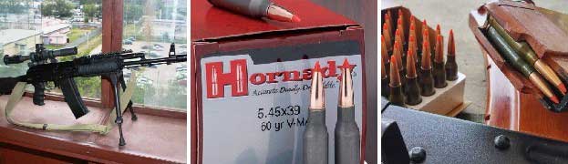 Автоматы, конечно, предпочтительнее по огневой мощи, но ведь не огрызки же эти ментовские, а полноценные длинноствольные. Ну так гражданские же есть, очередями только не стреляют, которыми ты и сам не будешь строчить при ограниченном боезапасе, если его неоткуда пополнить. Зато – и сошки для них есть, и оптика, и это в их положении намного важнее. Но если в России это была бы нарезная "Сайга", то в Хохляндии вместо неё харьковский "Вулкан Т". Тот же самый огражданенный АК-74. Только в России были бы патроны со своих заводов, а здесь – американские, фирмы Хорнади, единственного на Западе производителя патронов и для АК-74. Охотничьих, естественно. Забавно выглядят эти красные пластиковые обтекатели на кончиках пуль, которые сминаются, попав в цель, и пуля срабатывает как экспансивная. Для боевого оружия запрещены всеми конвенциями о правилах ведения войн, но кто подписывал эти конвенции в лохматом Средневековье? И одно только хреново – что маловато и их. Это же торговый магазин, а не склад.