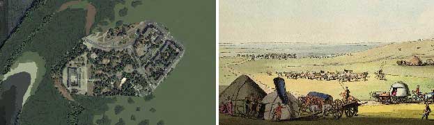 Пришло наконец время ознакомиться и со снятой на камеру дрона панорамой окружающей местности, ожидаемой, но один хрен повергшей в тоску. Даже с высоты, на которой летел дрон, до самого горизонта запись показывала всё тот же ландшафт – кусты и деревья вдоль Днепра, оп мере отдаления от него плавно переходящие в степь. А ближе к горизонту на севере в кадр попали многочисленные стада животных, всадники и табор с характерными для кочевых скотоводов юртами.
