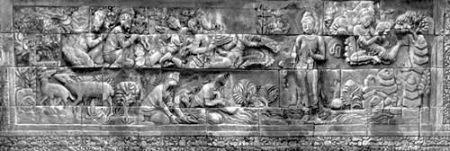 «Омовение Бодхисатвы». Рельеф на святилище Борободур. Камень. Ок. 800.