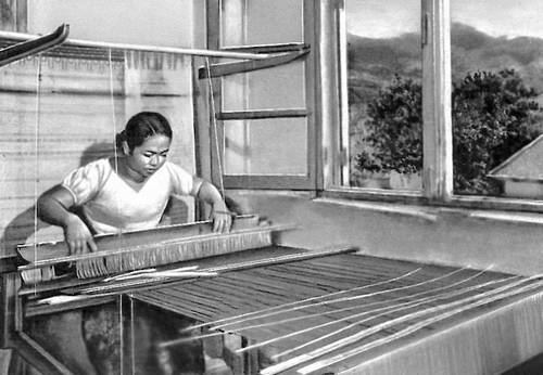 В ткацкой мастерской (остров Суматра). Производство ткани с серебряной нитью.