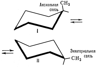 Инве'рсия в химии, 1) изменение конформации циклической молекулы, в результате чего меняется ориентация заместителя относительно кольца. Например, метилциклогексан существует в виде равновесной смеси двух конформаций с преобладанием формы II: