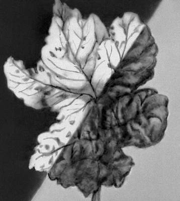Фотография «больного» листа дерева при обычном (справа, внизу) и инфракрасном (слева, вверху) освещении.