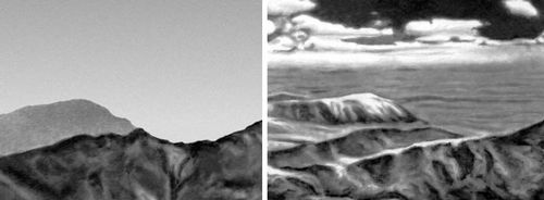 Фотография пейзажа: слева – на обыкновенной пластинке, справа – на инфракрасной пластинке.