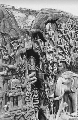 Миф о происхождении р. Ганг. Нисхождение реки Ганг на землю. Наскальный рельеф в Махабалипураме. 7 в. Фрагмент.