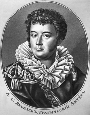 Я'ковлев Алексей Семенович [ 3(14).11.1773, Петербург, – 3(15).11.1817, там же], русский актёр. Сын костромского купца. Образование получил в приходском народном училище. Работал приказчиком в лавке. Был подготовлен к дебюту в Петербургском театре (1794) И. А. Дмитревским , заметившим его редкую одарённость. Я. был предшественником романтизма в сценическом искусстве. Выступая в классицистских трагедиях, он подчёркивал в образах героев их внутреннюю неудовлетворённость, критическое неприятие мира, глубину чувств (Иодай – «Гофолия» Расина, Танкред – «Танкред» Вольтера, Ярб – «Дидона» Княжнина). Склонность артиста к эмоциональной, динамичной игре особенно проявилась в мещанской драме и мелодраме (Мейнау – «Ненависть к людям и раскаяние» Коцебу и др.). Новым этапом его творчестве стало участие в постановке предромантических драм В. А. Озерова: Фингал («Фингал»), Димитрий Донской («Димитрий Донской»), Агамемнон («Поликсена»). Первый исполнитель на русской сцене ряда ролей в произведениях У. Шекспира (Отелло —«Отелло», Гамлет – «Гамлет») и Ф. Шиллера (Карл Моор – «Разбойники»).