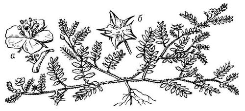 Я'корцы (Tribulus), род большей частью однолетних трав семейства парнолистниковых. Стебли обычно простёртые, листья парноперистые. Цветки мелкие, одиночные. Плоды дробные, распадающиеся на 5 плодиков (мерикарпиев), с шипами или гребенчатыми крыльями. Около 20 видов, главным образом в восточной части Средиземноморья, а также на Ю. Африки и в Америке, в СССР 2 вида. Я. стелющиеся, или наземные (Т. terrestris), растут на юге Европейской части СССР, на Кавказе, в Сибири, Казахстане и Средней Азии на песках, пустырях, около дорог, в посевах; Я. крупнокрылые (Т. macropterus) растут в долине р. Амударьи и в прилежащих пустынях. Нередко плоды Я. ранят ноги животных, а также засоряют шерсть (у овец).