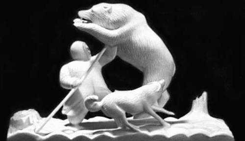 Якутская АССР. Архитектура, изобразительное и декоративно-прикладное искусство. С. Н. Пестерев. «Охота на медведя». Мамонтовая кость. 1957. Якутский республиканский музей изобразительных искусств, Якутск.