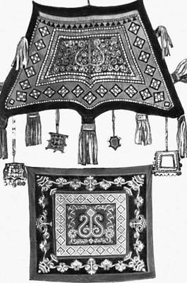 Якутская АССР. Архитектура, изобразительное и декоративно-прикладное искусство. Вышитый чепрак (вверху; середина 19 в.) и вышитый коврик (внизу; 1950-е гг.).
