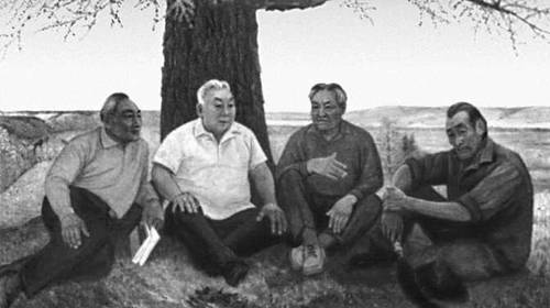 Якутская АССР. Архитектура, изобразительное и декоративно-прикладное искусство. А. Н. Осипов. «Народные писатели Якутии: Н. Е. Мордвинов (Амма Аггылыйа), В. М. Новиков (Кюннюк-Урастыров), С. Р. Кулачиков (Эллей), Д. К. Сивцев (Суорун Омоллон)». 1974.