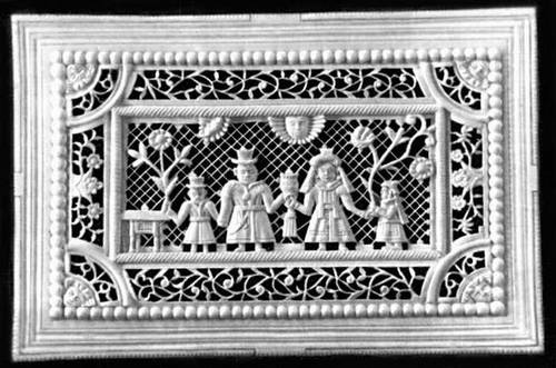 Якутская АССР. Архитектура, изобразительное и декоративно-прикладное искусство. Крышка шкатулки. Резьба по мамонтовой кости. 2-я пол. 19 в. Якутский республиканский музей изобразительных искусств, Якутск.