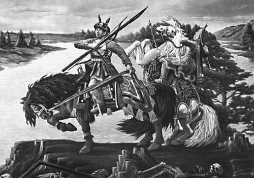Якутская АССР. Архитектура, изобразительное и декоративно-прикладное искусство. П. П. Романов. «Богатырь с невестой». 1938. Якутский республиканский музей изобразительных искусств, Якутск.