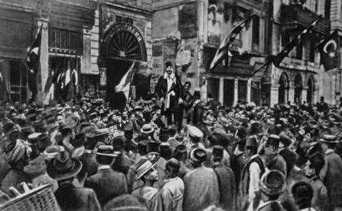Младотурецкая революция. Митинг в Стамбуле после восстановления конституции 1876. Июль 1908.