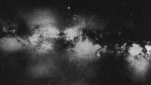 Мле'чный Путь, неярко светящаяся диффузная белесая полоса, пересекающая звёздное небо почти по большому Кругу, северный полюс которого находится в созвездии Волос Вероники; состоит из огромного числа слабых звёзд, не видимых отдельно невооружённым глазом, но различимых порознь в телескоп или на фотографиях, снятых с достаточным разрешением. Видимая картина М. п. – следствие перспективы при наблюдении изнутри огромного, сильно сплюснутого скопления звёзд нашей Галактики наблюдателем, находящимся вблизи плоскости симметрии этого скопления. Яркость М. п. в различных местах неравномерна. Полоса М. п. шириной около 5—30° имеет на вид облачное строение, обусловленное, во-первых, существованием в Галактике звёздных облаков или сгущений и, во-вторых, неравномерностью распределения поглощающих свет пылевых тёмных туманностей, образующих участки с кажущимся дефицитом звёзд из-за поглощения их света. Происхождение названия «М. п.» связано с греческим мифом о разлившемся по небу материнском молоке богини Геры, кормившей грудью Геркулеса.