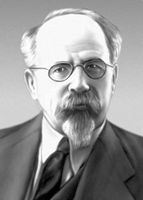 Ле'бедев Петр Николаевич [24.2(8.3).1866, Москва, – 1(14).3.1912, там же], русский физик. Родился в купеческой семье. В 1887—91 работал в Страсбурге и Берлине в лабораториях А. Кундта, Ф. Кольрауша и Г. Гельмгольца. В 1891, возвратившись на родину, начал преподавать в Московсом университете (профессор с 1900), где организовал лабораторию. В 1911 вышел в отставку (в знак протеста против реакционных действий министерства народного просвещения Л. А. Кассо) и на частные средства создал физическую лабораторию в университете Шанявского. Исследуя пондеромоторное действие волн на резонаторы, Л. впервые установил общие для волн различной природы (звуковых, гидравлических, электромагнитных) закономерности. Он показал, что при резонансе для всех видов волн наблюдается макс. отталкивание резонаторов. Стремясь экспериментально подтвердить электромагнитную природу света, в 1895 создал тончайшую установку, с помощью которой впервые получил миллиметровые электромагнитные волны, а затем установил их отражение, двойное лучепреломление, интерференцию и др. явления, присущие световым волнам. В 1901 впервые обнаружил и измерил давление света на твёрдое тело, подтвердив количественно теорию Максвелла. В 1909 Л. удалось решить труднейшую экспериментальную задачу – установить и измерить давление света на газы. Исследовал также роль вращения Земли в возникновении земного магнетизма. Л. создал первую в России физическую школу, его именем назван Физический институт АН СССР.