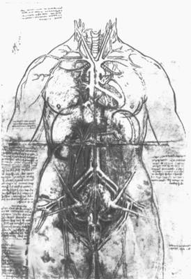 Леонардо да Винчи. Рисунки. Анатомическая штудия. Перо. сангина. Королевская библиотека, Виндзор.