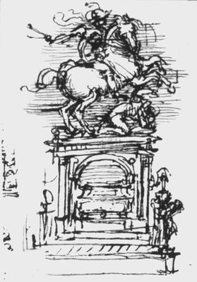 Леонардо да Винчи. Рисунки. Проект памятника Тривульцио. Ок. 1508—12. Перо. Королевская библиотека, Виндзор.