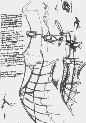 Леонардо да Винчи. Рисунки. Части летательных аппаратов. Перо. Пинакотека Амброзиана. Милан.