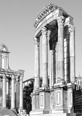 Рим (Древний). Храмы Весты (справа; 1 в.) и Антонина и Фаустины (слева; 141) на Римском форуме.