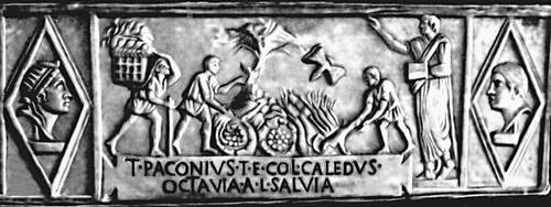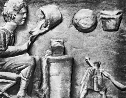Мавзолей М. Вергилия Еврисака, пекаря и поставщика хлеба. Середина 1 в. до н. э. Рим. Фриз с изображением пекарни. Сдача хлеба чиновникам.
