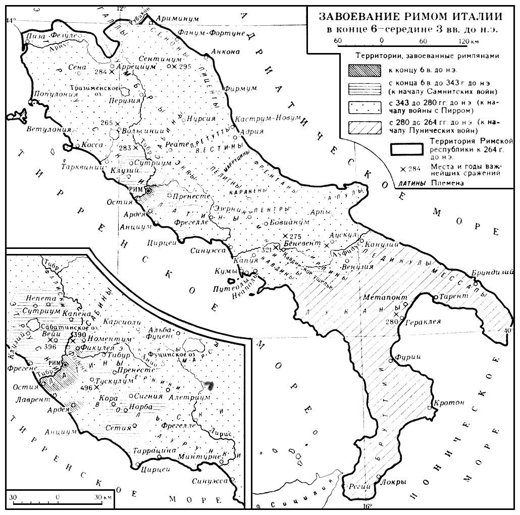 Завоевание Римом Италии в конце 6 – середине 3 вв. до н.э. План.