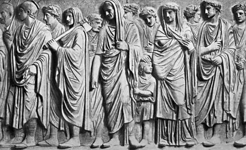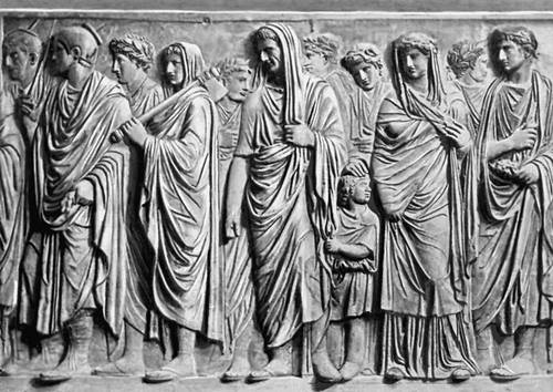 Рим (Древний). «Процессия жрецов и членов семьи Августа». Рельефы алтаря Мира в Риме, 13—9 гг. до н.э.