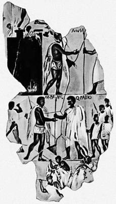 Фрагмент росписи склепа, открытого на Эсквилинском холме в Риме. Фреска. Начало 3 в. до н. э. Капитолийские музеи. Рим.