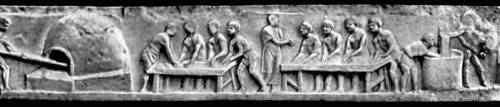 Мавзолей М. Вергилия Еврисака, пекаря и поставщика хлеба. Середина 1 в. до н. э. Рим. Фриз с изображением пекарни. Приготовление теста и выпечка хлеба.