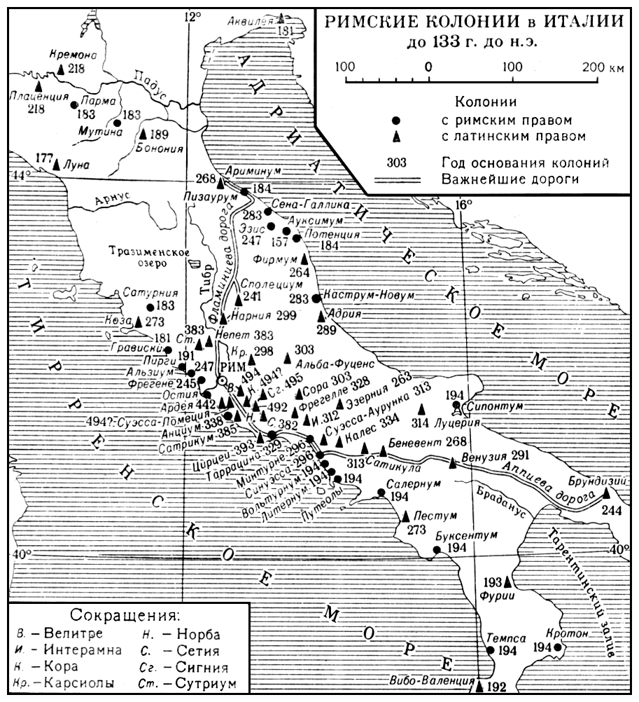 Римские колонии в Италии до 133 г. до н.э. План.