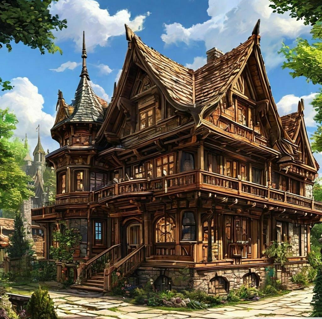Сейчас мы стояли возле крупного трёх этажного (если крышу считать этажом, так как есть там пара комнат) особняка и думали покупать его или нет, просто сумма за его смешная, четыреста золотом… да такой будет стоит не меньше трёх тысяч а тут считай за даром. Сделан он был из дерева, но очень добротный.