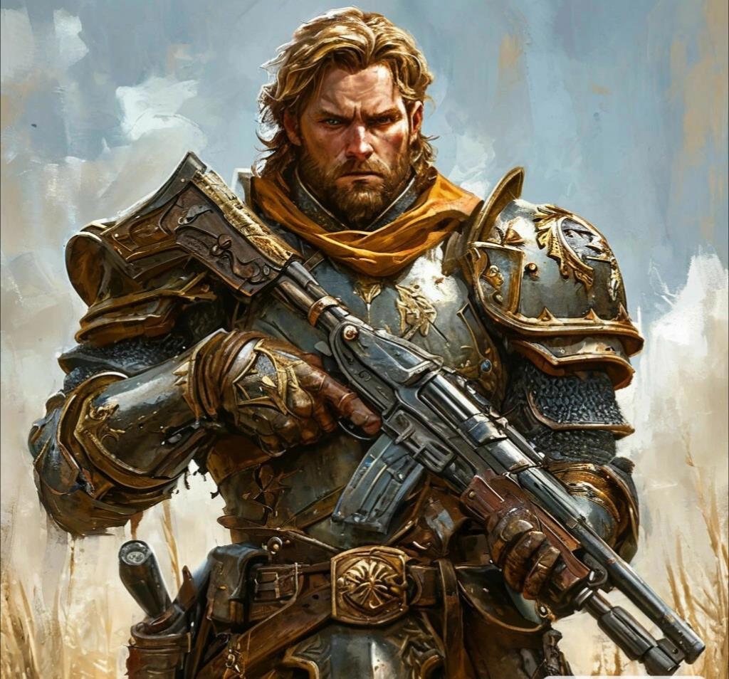 Ко мне подошёл в месте со Свеном один из воинов, он отличался от остальных, рост был его выше на пол головы чем у всех присутствующих, латы его были похожи на те что носят паладины, в руках он держал свой необычный мушкет. Волосы светло русые, не большая борода которую носят большая часть мужчин, взгляд его хоть и выглядит хмурым, но в них почему то не чувствовалось чего то плохого, наоборот мне почему-то хочется рассказать о себе, излить душу и чувствую какое-то умиротворение, это так странно. именно так я себя чувствовала рядом с Фаолом Алонсием, только почему то сильнее.