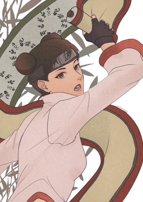 В целом, пока что пусть и простому запечатыванию кунаев и сюрикенов, но вкупе с неожиданным высвобождением из свитков прямо в бою может доставить проблемы многим соперникам. Хотя почему только из свитков? Девушка пошла дальше и научилась запечатывать предметы в длинные и пластичные ленты. А из предметов и оружий у неё теперь были не только кунаи и сюрикены. Будучи дочкой кузнеца, она, естественно, обзавелась дополнительным снаряжением. Цепями, короткими мечами, иглами и даже защитными пластинами, за которыми она могла бы прятаться от разнообразных атак врагов.