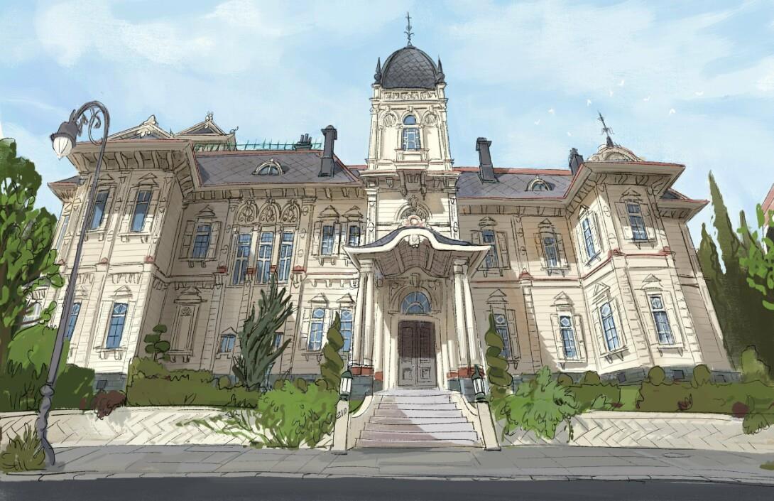 Двухэтажное здание, не слишком большое и не слишком маленькое, в котором он предусмотрел все комнаты и коммуникации, что могут понадобиться, включая бальный зал, центральное отопление, водоснабжение и канализацию.